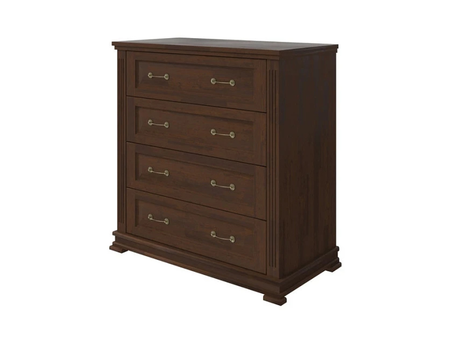 Milena - комод для тех, кто выбирает мебель один раз и надолго. Каркас и фасады из натурального массива, защитное лаковое покрытие, которое проявляет неповторимую текстуру дерева и никакой бумажной плёнки, которая вздувается через год. Четыре глубоких ящика на шариковых направляющих полного выдвижения делают хранение удобным, а вес 61 кг. говорит о плотности материала без лишних слов.