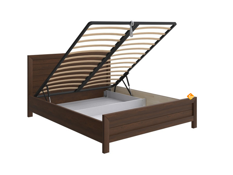 Кровать комплектуется металлическим основанием с подъемным механизмом. Газовые амортизаторы обеспечивают плавное и лёгкое открытие, открывая доступ к вместительному бельевому коробу под спальным местом.